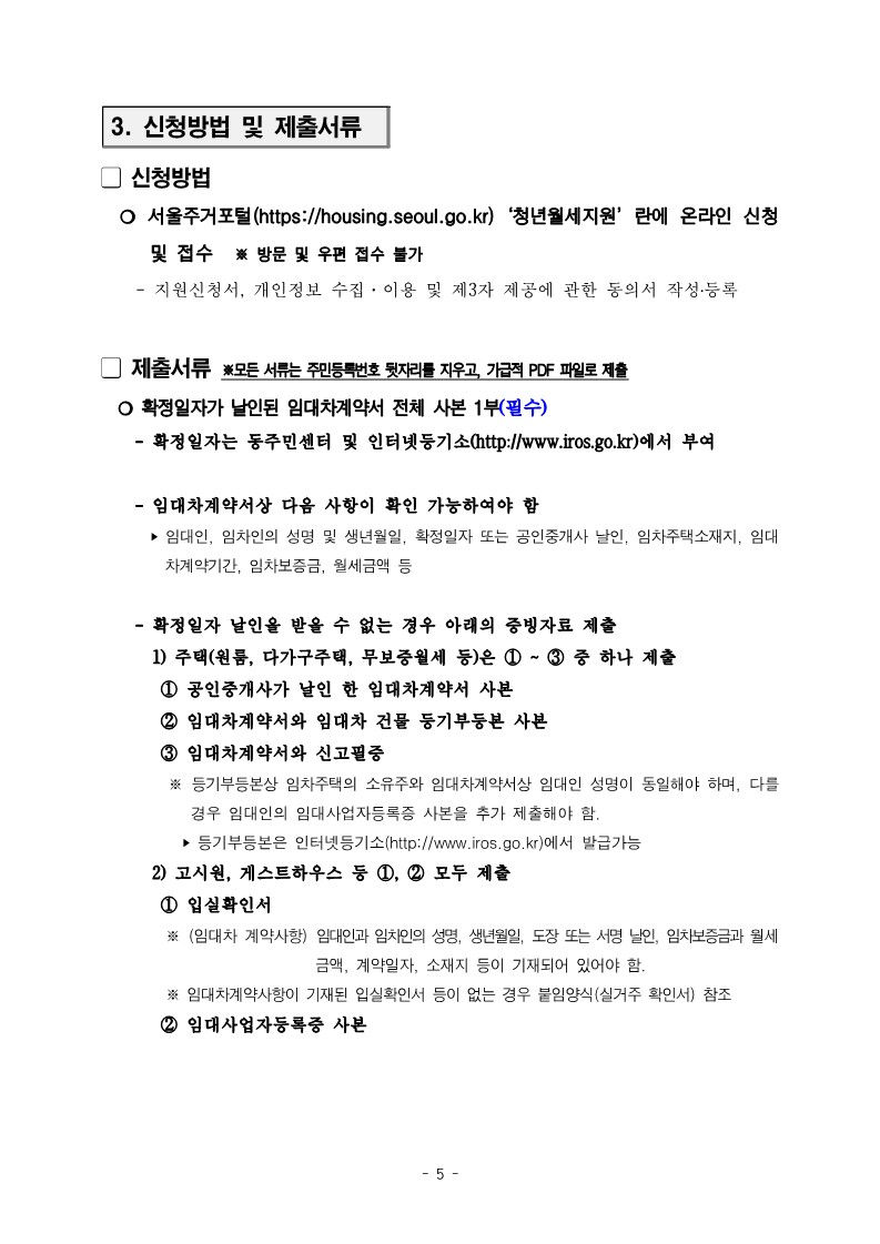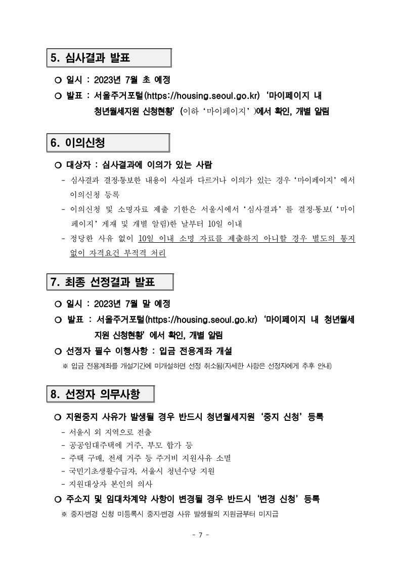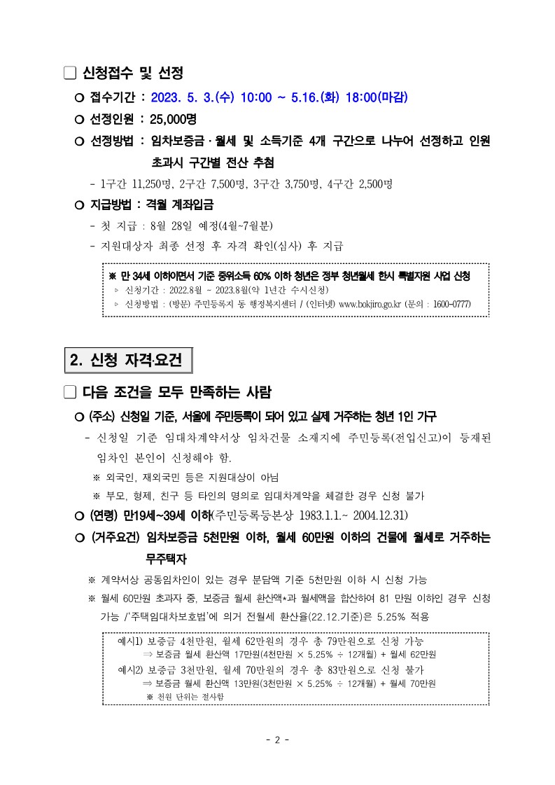 사 업 명 : 2023년 서울시 청년월세지원 사업