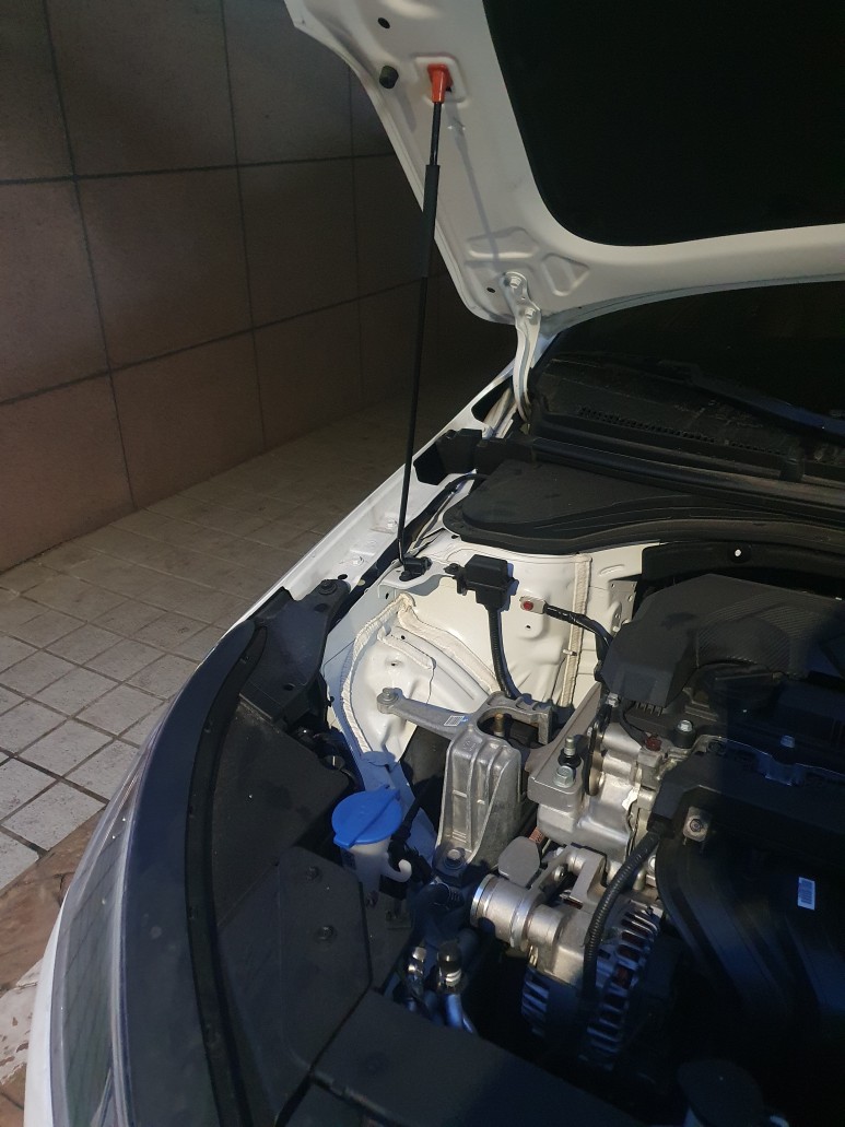 차 앞으로 가서 본네트를 보면 살짝 열려있긴 하지만 다 열리진 않은 모습을 볼 수 있어요.